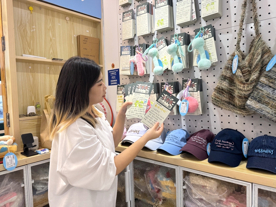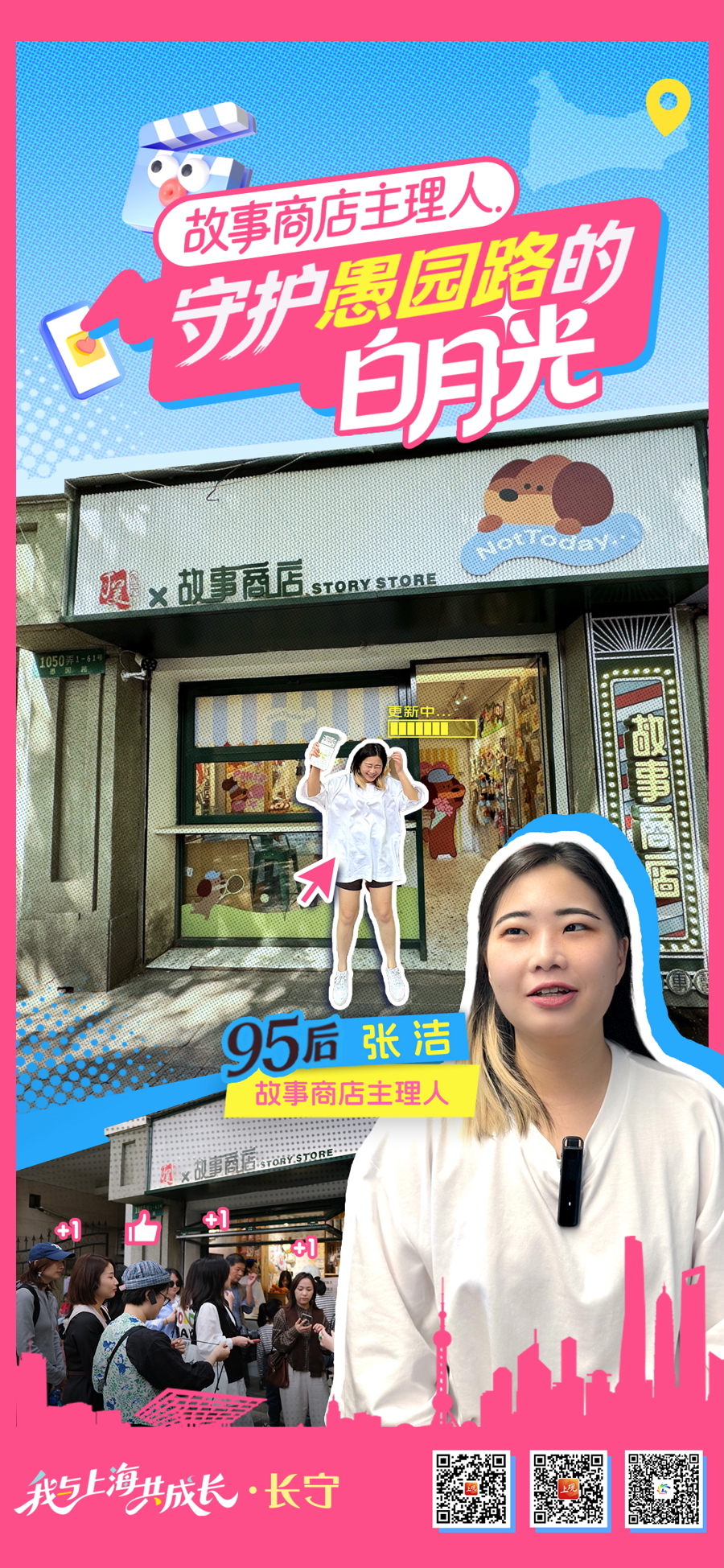 2023年10月,在长宁区江苏路街道的支持下,故事商店迁入愚园路1046号新址。像海绵一样吸收了诸多新技能的张洁也回归愚园路。彼时,愚园路已相继迎来路易·威登、李维斯等国际知名品牌的快闪店,崭新的“故事商店”、迈入城市更新新阶段的愚园路与焕然一新的张洁在此刻相遇,她成为“故事商店3.0版”的“常驻店主”。
