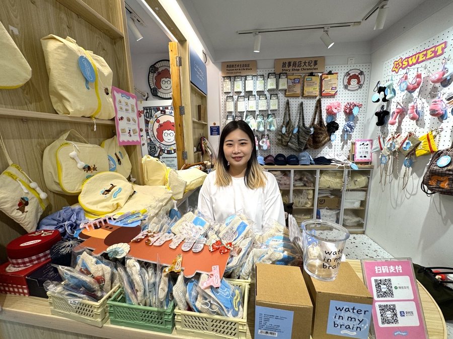 相较国际品牌连番登场的愚园百货公司,面积只有10余平方米的故事商店近年来成为本土青年艺术家和新兴品牌接连亮相的舞台,为百年愚园路持续带来清新艺术风与潮流年轻力。这背后离不开愚园路长宁段运营方“CREATER创邑”以及社会组织“社趣更馨”的策划和运营,中坚力量便是“95后”社会工作专业硕士张洁。