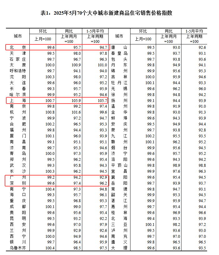 上海5月新建商品住宅价格环比+0.7%(前值+0.5%),同比+5.9%(前值+5.9%);上海5月二手住宅价格环比-0.7%(前值+0.1%),同比-0.1%(前值-0.6%)。